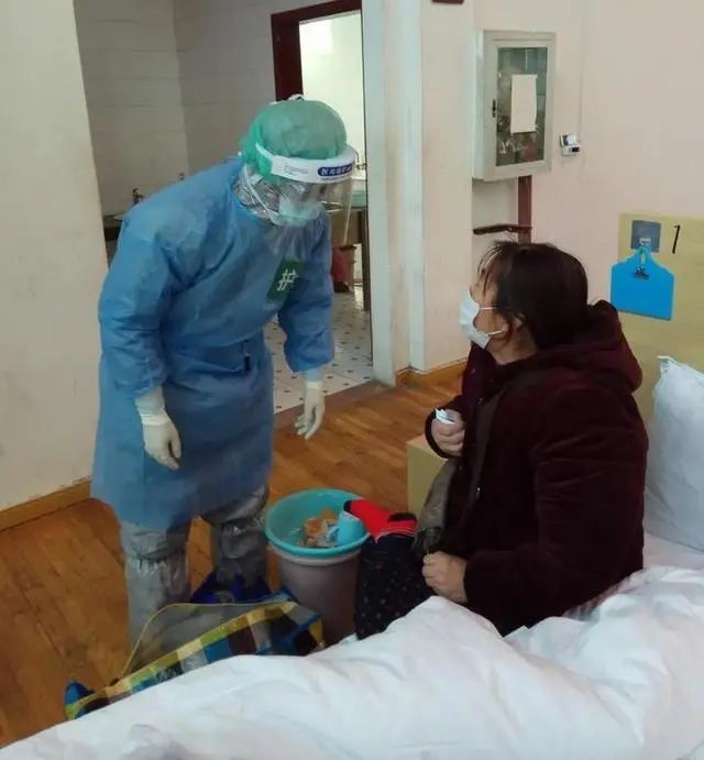 几天后,杨晨旭特地来看望这位阿姨,她的情绪明显好了很多。虽然自己穿着防护服戴着口罩,阿姨还是一眼就认出了他,一个劲地往他手里塞苹果。
