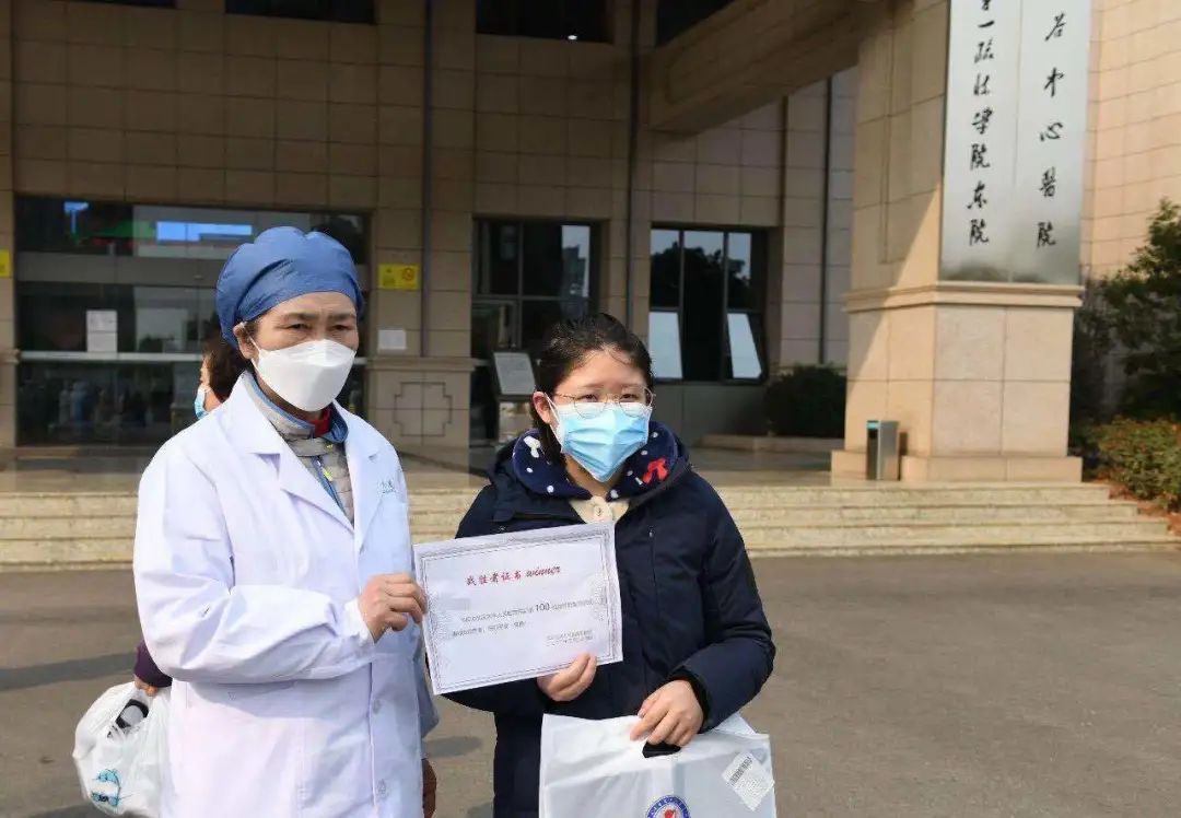 19名新冠肺炎重症患者治愈出院,李兰娟院士为他们颁发“战胜者”证书。这是近日发生在武汉大学人民医院东院区的一幕。