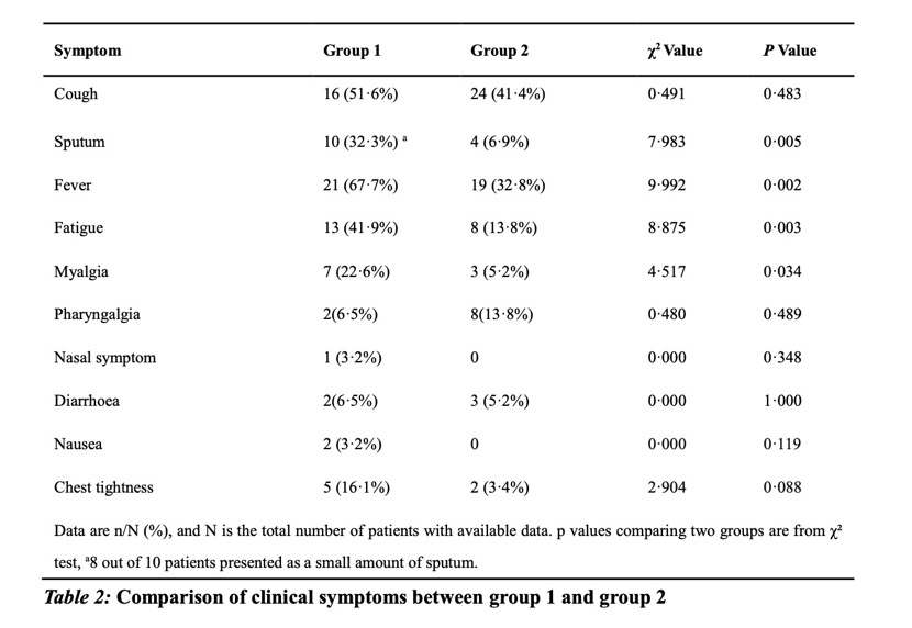 在这项研究中,研究者观察到1月23日之前收治的女性患者比例很小,考虑到样本量不大,很难解释这种现象。但令人惊讶的是,两组之间的入院症状存在若干差异。新冠肺炎的一些常见全身症状,例如发烧,乏力,痰和肌痛,在1月23日之前入院的患者中更为明显,而在后来感染的患者中更为隐蔽。