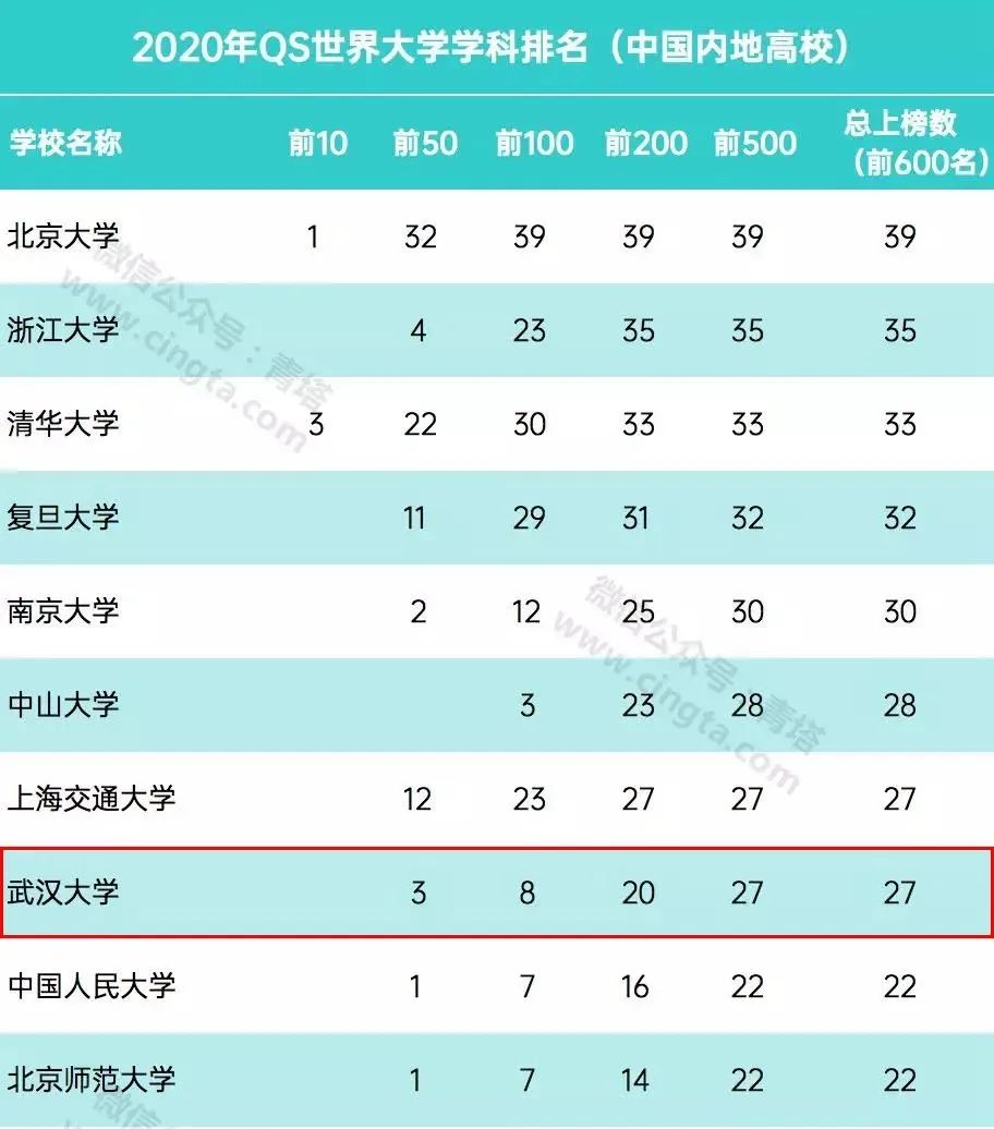 原标题:《QS发布丨武大27个学科进入全球前300》