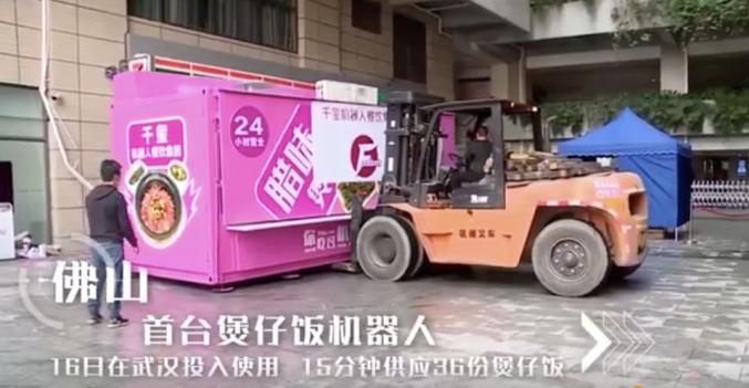 山东、东北拉来了成吨的蔬菜和大米,四川拿出了儿菜、折耳根及其配套菜谱,广东也不例外——在疫区隔离点投入了煲仔饭机器人,24小时不间断为前线医护人员免费提供冬日里的温暖饭菜。