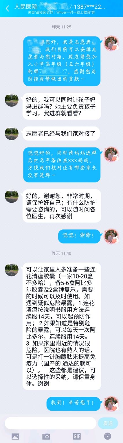 “老师很用心、很负责,有武大的‘小老师们’在,我们很放心!”、“老师们辛苦了!希望没有耽误你们自己的学习,注意防护!”、“谢谢老师们!每一个人都在自己的阵地战斗,春天快来了!”家长群里一条条留言刷了屏。
