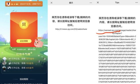 一些假红包在“提现”时要求必须填写个人信息,根据用户的分享,还可以获得用户关系网络等信息。而这些隐私信息的泄露,很可能会带来安全隐患。这些违规外链,我们一直在清理,大家也要警惕。