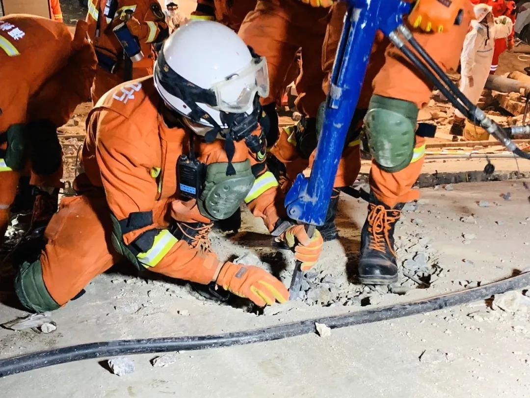 消防救援力量将作业面分为6个区域,同步开展救援。通过“电子信号搜救辅助设备寻找手机信号、人工侦听确认手机位置、搜救犬寻找生命迹象、生命探测仪确认被困人员”等方法,相互印证、反复侦察,实现搜索全覆盖、高精度。各搜救组按照“由表及里、先易后难”的顺序,综合采用“凿岩机破拆、气垫顶撑、液压剪扩”等方式破拆大型厚重构件,采取“无齿锯切割、破拆锤凿击、撬棍扩张”等手段清理轻薄简易构件,多点作业、逐步推进、有序轮换,保持救援行动不间断。同时,前沿指挥部落实“明确信号发布、设定撤离路线、部署示警哨位、消除环境隐患”等安全措施,严防作战伤亡。