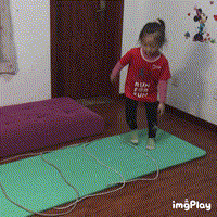 8.绳梯横向移动动作要领:让孩子在格子里(做三到四个格子)侧向移动,比如:左脚先进,然后右脚再进一格,接着左脚再进下一格,右脚跟进,鼓励孩子不要踩着绳子,熟练后速度可以由慢至快。