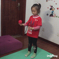 3. 摸高动作要领:家长可以用手或者棍子,拴一个小物品(如羽毛球、乒乓球等),根据孩子的跳起摸到的高度,进行摸高。不要让孩子每次都摸到,给她一点难度和挑战。