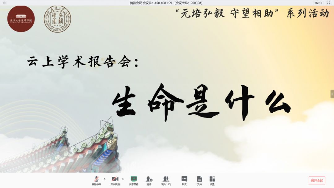 汤超院士的学术报告以“生命是什么”为题,从武汉大学、武汉情缘和元培渊源开始,从“生命是什么”这一终极问题入手,分别从哲学、生物学、物理学等多学科的角度,向大家讲述了这一问题答案的丰富性、可能性,为同学们打开了探讨生命科学的大门。