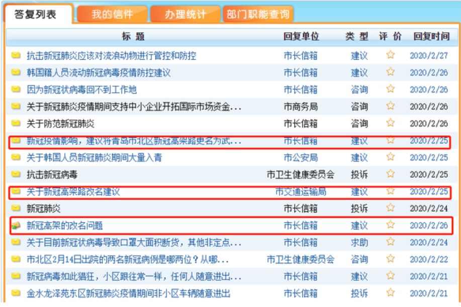 根据媒体报道,不止一个网友近日给青岛政务网政府信箱写信,建议政府给“新冠高架桥”改名,理由是这个名字不吉利。