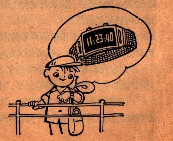 书中着力描写的电视手表,功能并不复杂,数字显示时、分、秒,不用上发条。似乎这是最先普及的科技产品。读过这本小说五年之后,1983年我有了第一只手表,大舅10元从广东买的走私电子表,刚带上的时候时不时看上一眼,走在路上很神气。不过现在这样的产品似乎已经看不到了,集成各种新功能的电子产品更新很快,反倒是机械表被认为是更高端的产品。