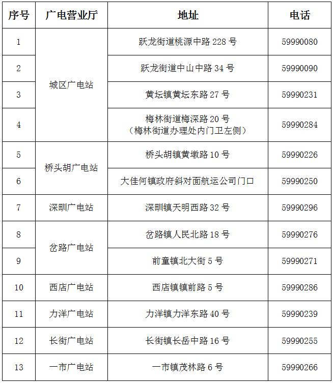 线下口罩领取点(广电营业厅)地址