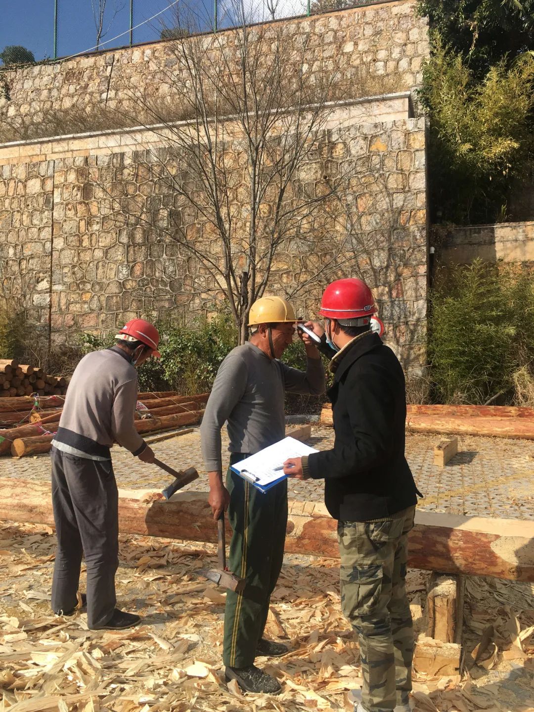 2月初,施工单位安排人员进场开始做防疫物资准备及复工的准备工作,提交《企业复工申报表》和《返岗返工人员登记表》,制定《丽江“文庙”、“武庙”建筑修缮及环境整治工程新型冠状病毒肺炎预防及应急预案》,并于2月15日得到古城区政府的复工批复。随后,项目管理人员5人全部到岗,28名施工人员陆续进场,整个修缮工程于2月20日全面复工。