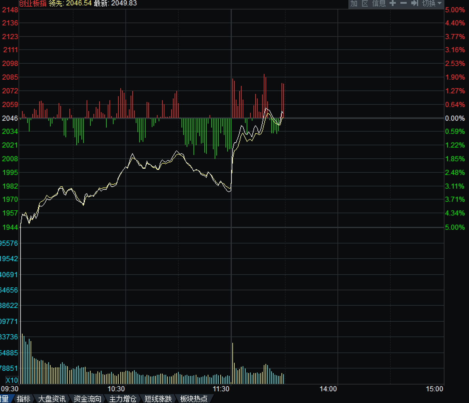 A股三大指数午后直线拉升:创业板指、深成指一度强势翻红