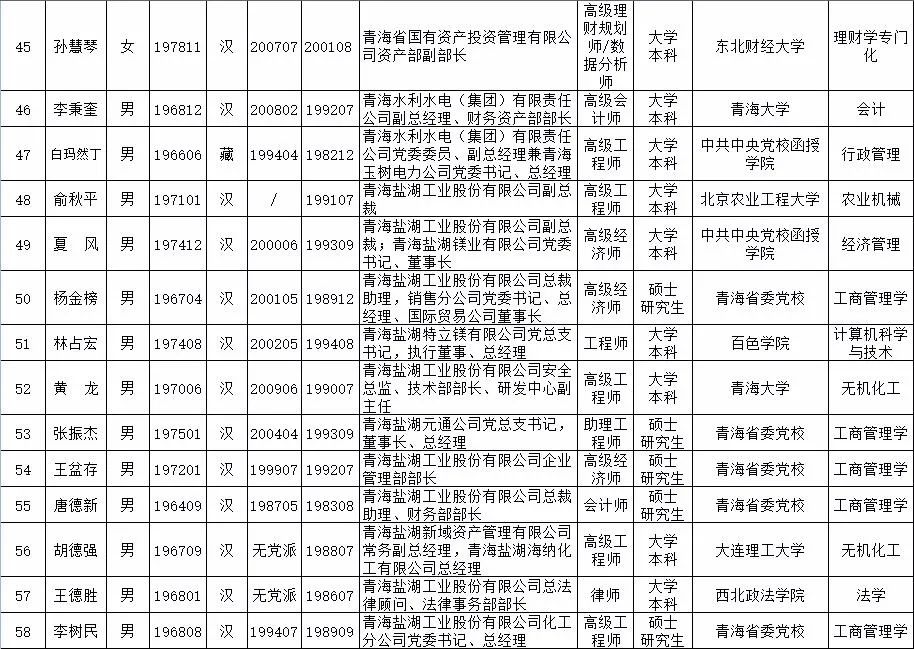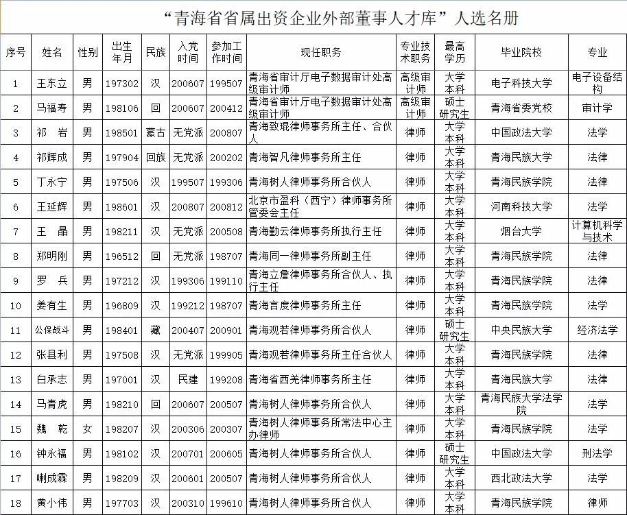 原标题:《“青海省省属出资企业外部董事人才库”人选公示》