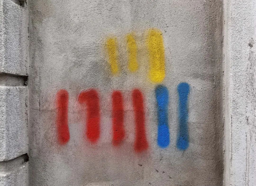 “一共9个竖条表示这一扇门里有9户居民,下面这一排4条红色表示一楼有4家是租住在这儿的,两户房屋空置的用蓝色表示,上面3条黄色说明二楼有3户居民自住在此。”四川北路街道平安办负责人洪琦介绍道。