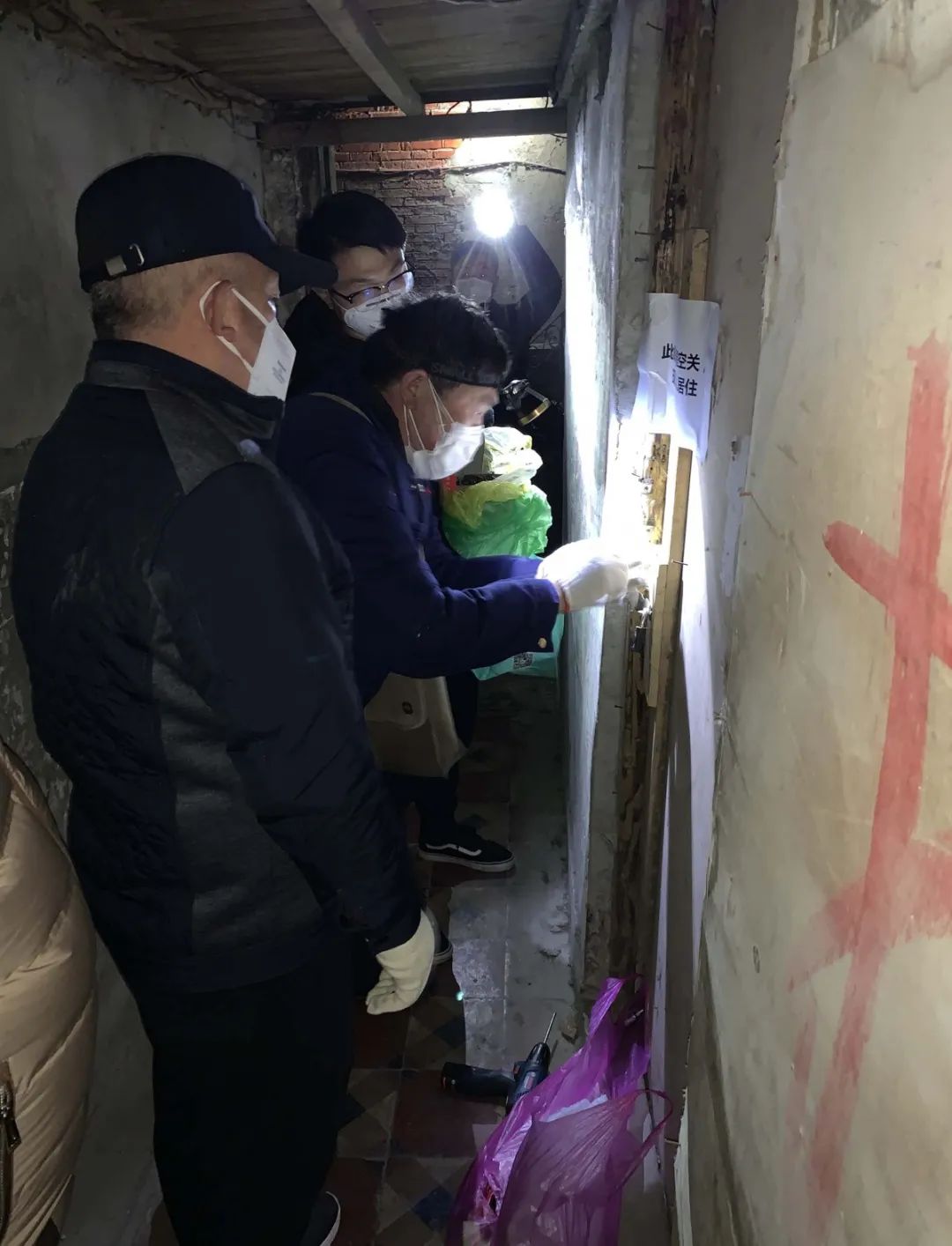 经排查,对该区域的房屋分为“已动迁、未动迁”两大类开展分类管理,并按照“自住、租赁、空置”三小类运用黄、红、蓝进行分色标注,对392户房屋落实“疫情防控一房一册”、对300多名已在住人员和从业人员落实“人员信息一人一表”,对50多间空置房屋张贴封条,对11处难以砌墙的动迁房屋进行挂锁封闭,对1处违法居住点位进行封墙处置。