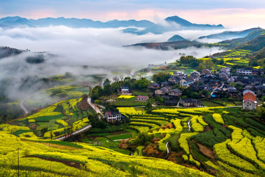每年三月底,是欣赏油菜花最好的时候,此时油菜花竞相开放,生长在层层叠叠的梯田之上,千亩油菜花与茶树黄绿相间,形成层层叠叠的梯田花海景观。