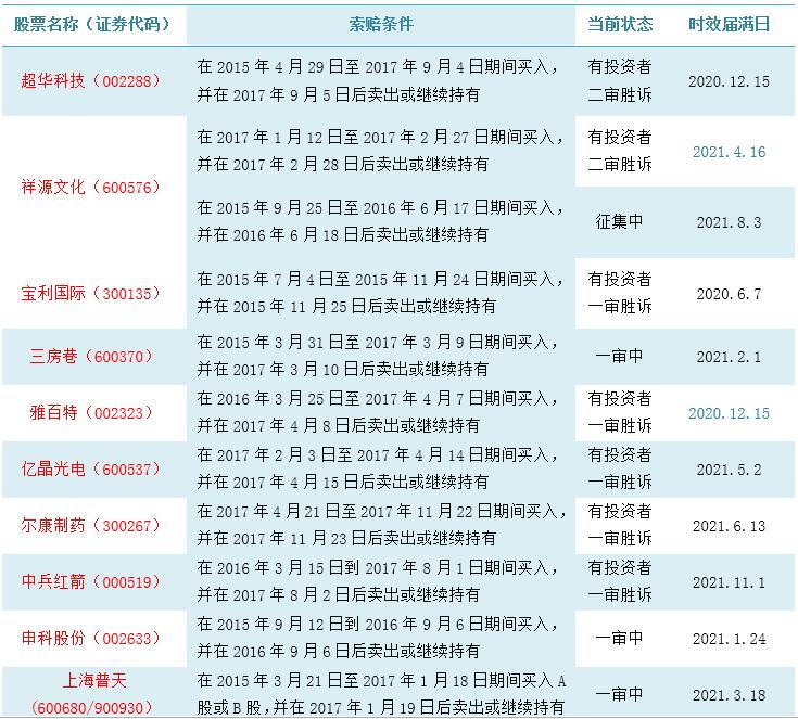 厉健律师团队整理汇总20只可索赔股票信息,供广大投资者参考,索赔条件和赔偿金额以法院认定为准。