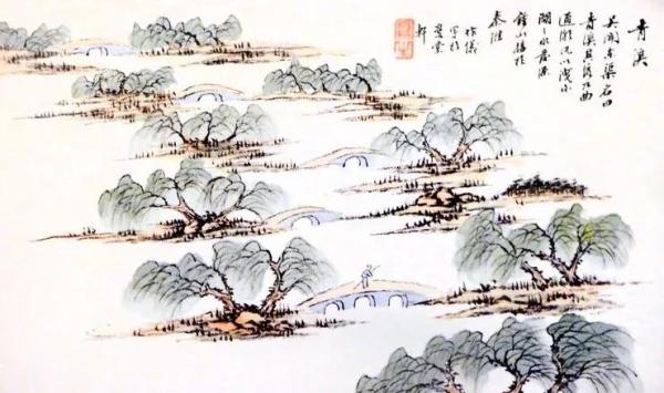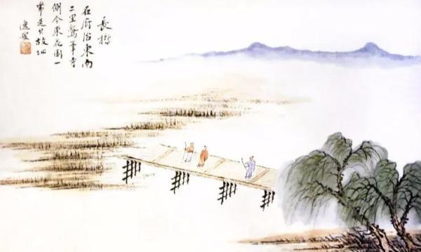 李白《长干行》驻足金陵繁华地,在今天南京秦淮区秦淮河以南至雨花台以北一带,曾是江南的佛教圣地,素有“佛陀里”之美誉。这样一个热闹的商业区,李白深情地吟诵爱情,“郎骑竹马来,绕床弄青梅。同居长干里,两小无嫌猜”为金陵女子回忆童年时与丈夫“青梅竹马”“两小无猜”的情景,“十四为君妇,羞颜未尝开”,初为人妇时依然羞涩不堪。“十五始展眉,愿同尘与灰。常存抱柱信,岂上望夫台”,却又是如此热烈而坚贞的爱恋。丈夫远行经商,思念情深,而有“感此伤妾心,坐愁红颜老”,这份温柔细腻的思念之情,在作者的笔下,缠绵悱恻。