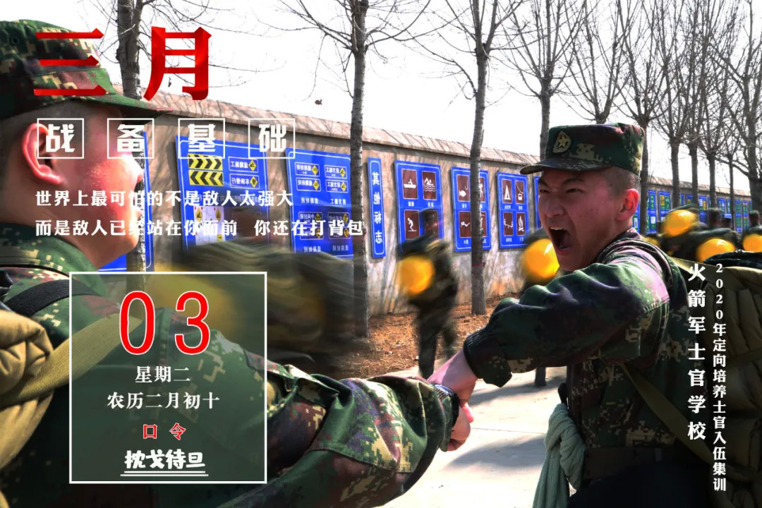 今年年初,火箭军一批定向培养士官结束普通高校生活,来到了火箭军士官学院。今天要为大家呈现的,便是他们的独家日历,记录了他们从学校到军营的点滴故事和成长轨迹……