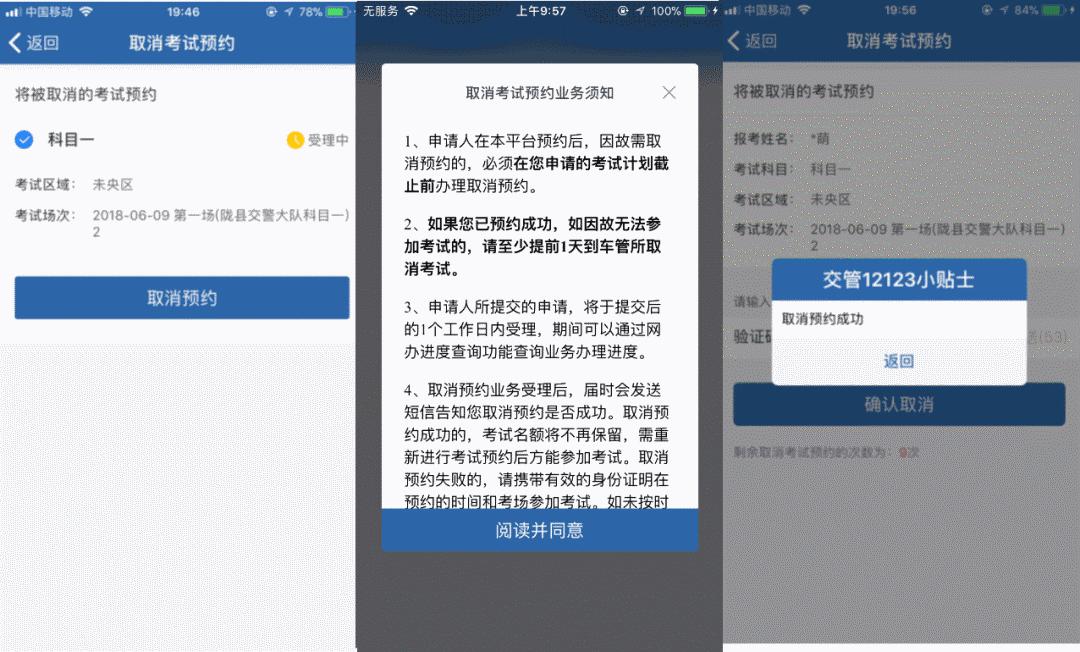 二、用户预约申请成功后,可以在网办进度中查询该预约的受理状态,如果预约成功,可查看预约电子凭证,因故不能按照预约时间参加考试的,应当提前一日申请取消预约。
