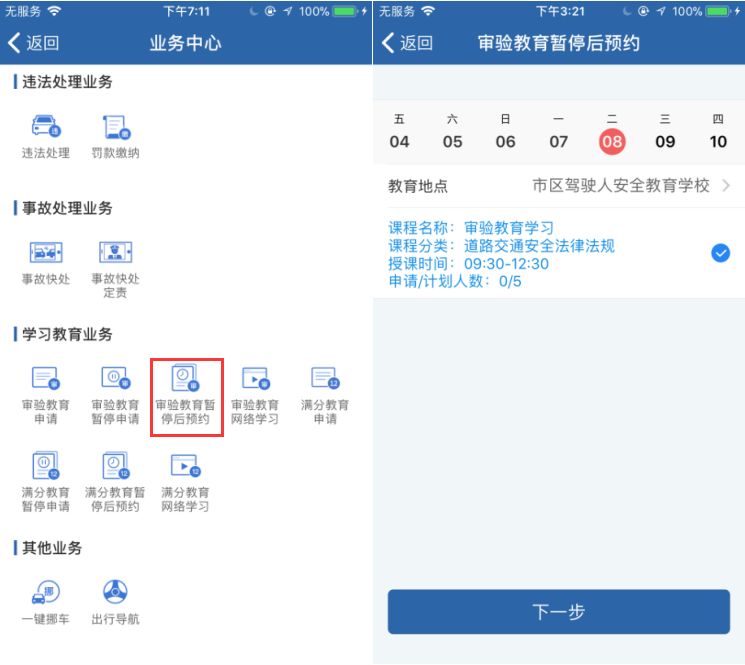 对于已申请满分现场教育暂停申请的驾驶人,驾驶人可通过【满分现场教育暂停后预约】重新预约现场教育。