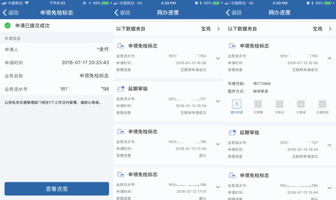 三、网上提交成功后,公安交通管理部门网办中心将在一个工作日内办理,期间您可以通过网办进度查询业务办理进度。
