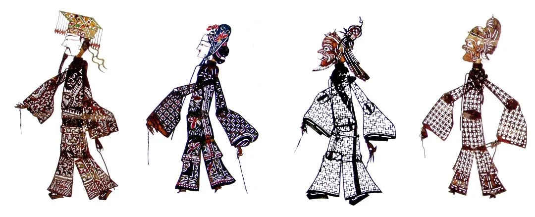 皮影影偶是纯粹二维的线条艺术。影偶展现的是角色不同角度的侧面形象,这种灵活的角度处理,与古埃及壁画的“正面律”有些暗合,但更加巧妙、生动。在没有近大远小的透视原理帮助下,一代代影偶匠人总结出这种既抽象凝练又富于表现力的雕刻法则。