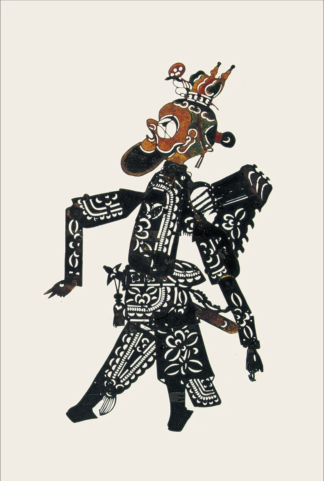 仔细观赏影偶的面部线条,你会发现它包含着动态的情感。如生旦之眸子居中,目如秋水,口角平整,喜怒不形于色,是正面主角,性格也是类型化的忠孝节义、三纲五常。僧人、武将这类身份特殊的角色,鼻尖向上下倾斜,眸子紧凑如斗鸡眼,眼神中蕴含着巨大的能量。力士、神将、兵卒等有武力的角色,口部还有些咬牙切齿。
