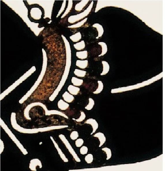 影偶的头冠和身段,则取材自传统工艺美术中的各种图案与纹样,而又极为谐和、优美,在圆润和凌厉、粗犷和细腻之间游刃有余,组合出丰富的变化和创造。我们可以任选几枚同类型的影偶头梢来寻找其关联和变化。