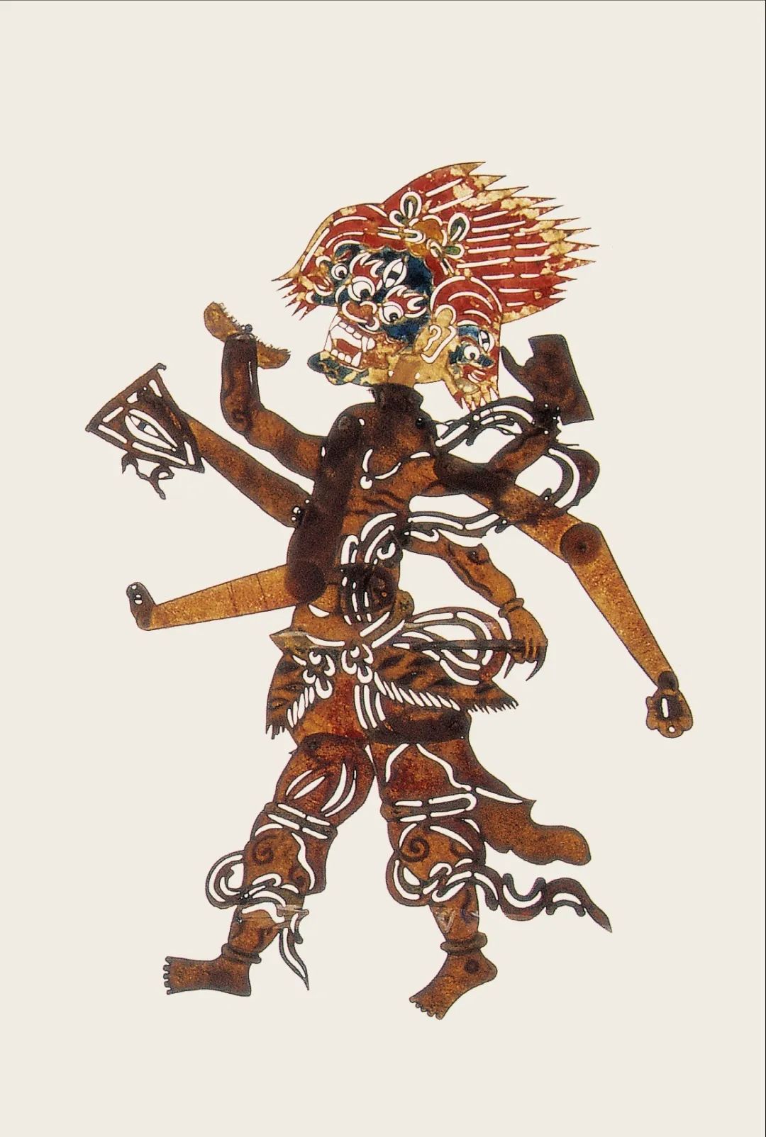 而其象征身份的冠帽头饰尤其繁复精细,则以半侧面为主,称为七分面、八分面。影偶的偶身部分(身段)一般要搭配多个头梢,有的处理为五分面,有的处理为七分面,充分展露其双臂、双腿和躯干。