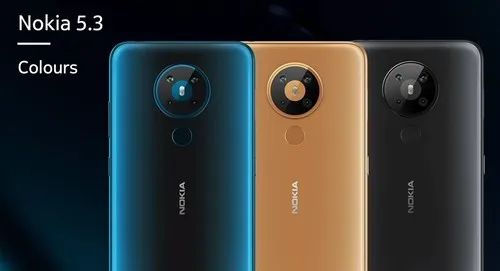 诺基亚5.3,主打超长续航和拍照,搭载了1300万主摄+500万超广角+200万微距+200万景深摄像头。前置为一颗800万像素摄像头,具备超广角和微距拍摄的功能,配备了4000mAh电池,电池续航能力高达两天。6.55英寸的HD水滴屏幕,高通骁龙665处理器,售价189欧元。有蓝黄黑三种颜色可选。4GB/6GB+64GB/128GB存储。售价189欧元起。