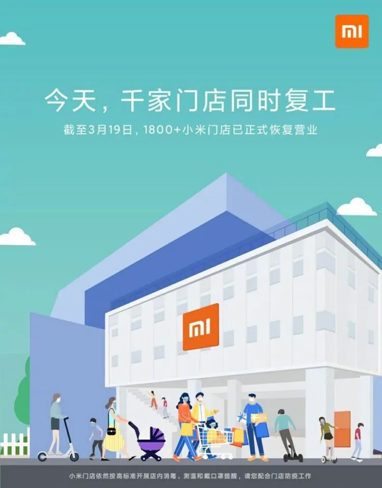 小米官方宣布,截至3月19日,全国超过1800家小米门店正式恢复营业。同时表示,门店将采取高标准店内消毒、测温等工作,请顾客们放心并配合。