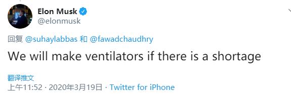 据路透社报道,通用汽车和福特汽车18日表示,他们正在与白宫官员商讨如何转产呼吸机等医疗设备,以应对新冠肺炎病毒的暴发。特斯拉首席执行官埃隆·马斯克(Elon Musk)发布推文表示:“如果短缺,我们将生产呼吸机。”