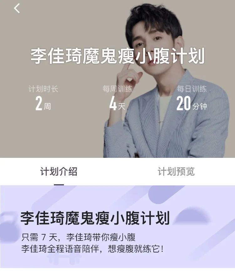 但这并不是重点,当天,李佳琦还以语音进行了一场跨界合作——与运动健身平台Keep共同推出李佳琦魔鬼瘦小腹计划。