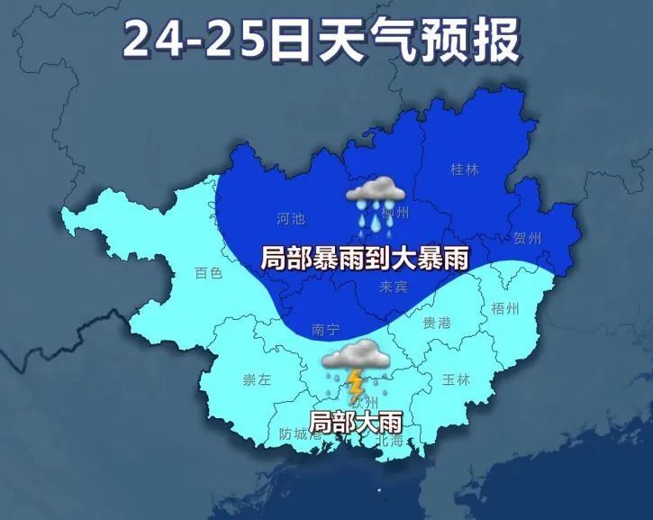 预计从今天开始到25日,受高空槽和弱冷空气影响,广西有一次明显降水、强对流天气过程,强降雨主要出现在桂林、柳州、河池、贺州、来宾等市。