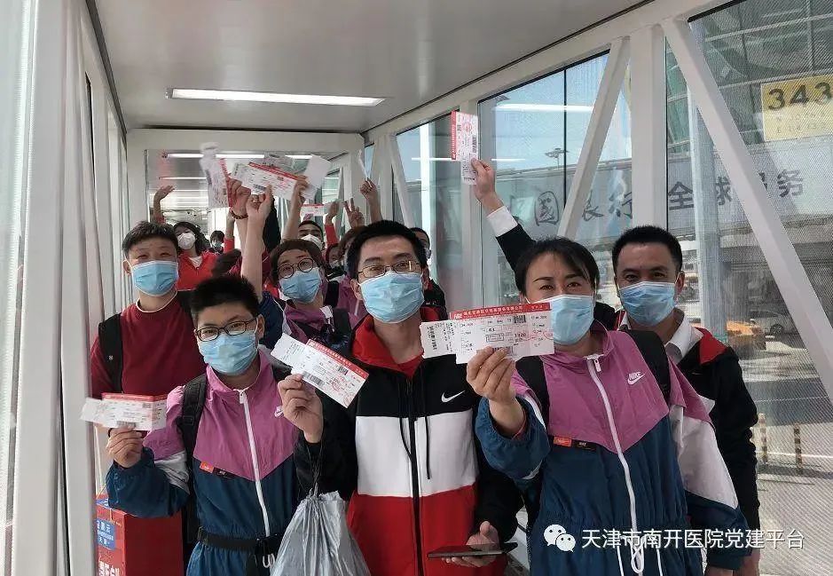 3 月 17 日及 19 日,天津援鄂第一、二、四、五、六、九、十一、十二、十三批医疗队队员圆满完成任务,胜利返津。