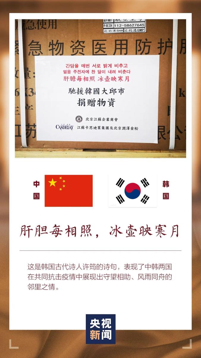 在很多中方对外提供的援助物资上都写有寄语,“千里同好,坚于金石”“青山一道,同担风雨”“人心齐,泰山移”……有诗句,也有名言,一行行简短而真挚的文字背后,是中国投桃报李的情谊,也是和世界各国共同战“疫”的坚定决心。网友纷纷感叹:看到了世界诗词大会。