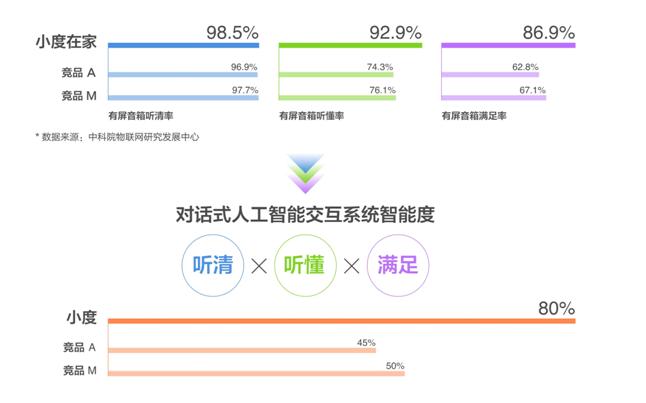值得一提的是,社区服务更考验一款智能音箱的智能度。一般而言,评价智能音箱好坏主要取决于三个方面:听清、听懂、满足,对于语音识别、语义理解等技术标准,以及背后智能音箱设备的知识完备程度和技能服务生态有更高的要求。去年12月,中科院发布的《智能音箱的智能技术解析及其成熟度测评》提到,在听懂、理解用户指令方面,小度智能音箱是唯一听懂率超过90%的产品,无论无屏还是有屏产品均明显领先于其他品牌。同时,在满足用户需求和体验方面,小度同样在评测中满足度得分第一,其中有屏音箱的用户满足度相对更高。