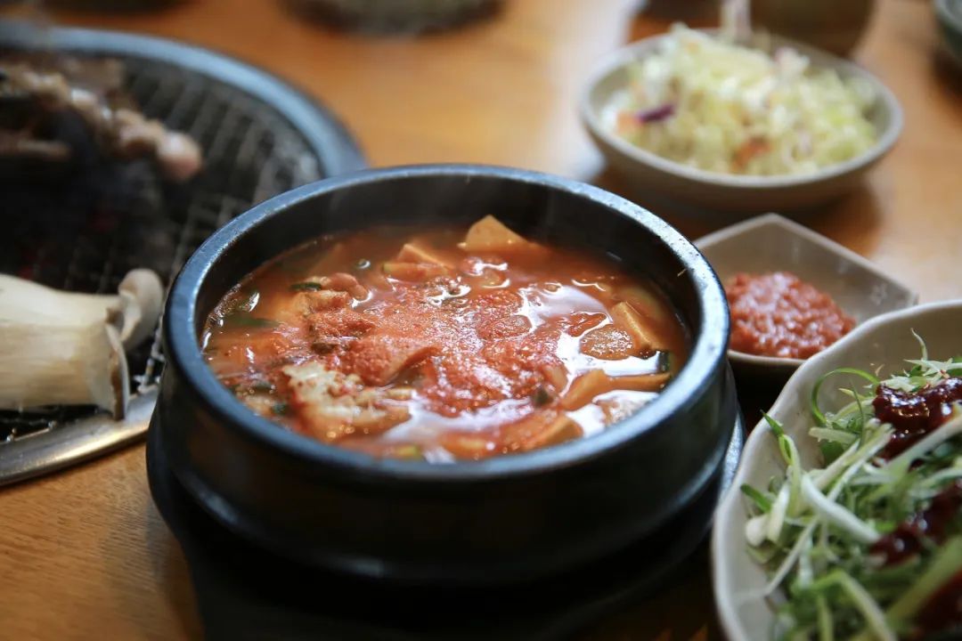 海鲜大酱汤我们本来只点了一份,众人尝过之后又加点了两份,因为真的好喝!也是我四次济州岛之行里喝过汤口最浓郁的大酱汤,够味!特别适合喜欢重口的人。
