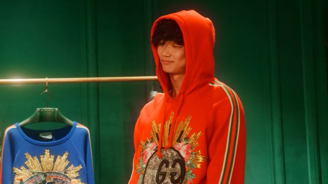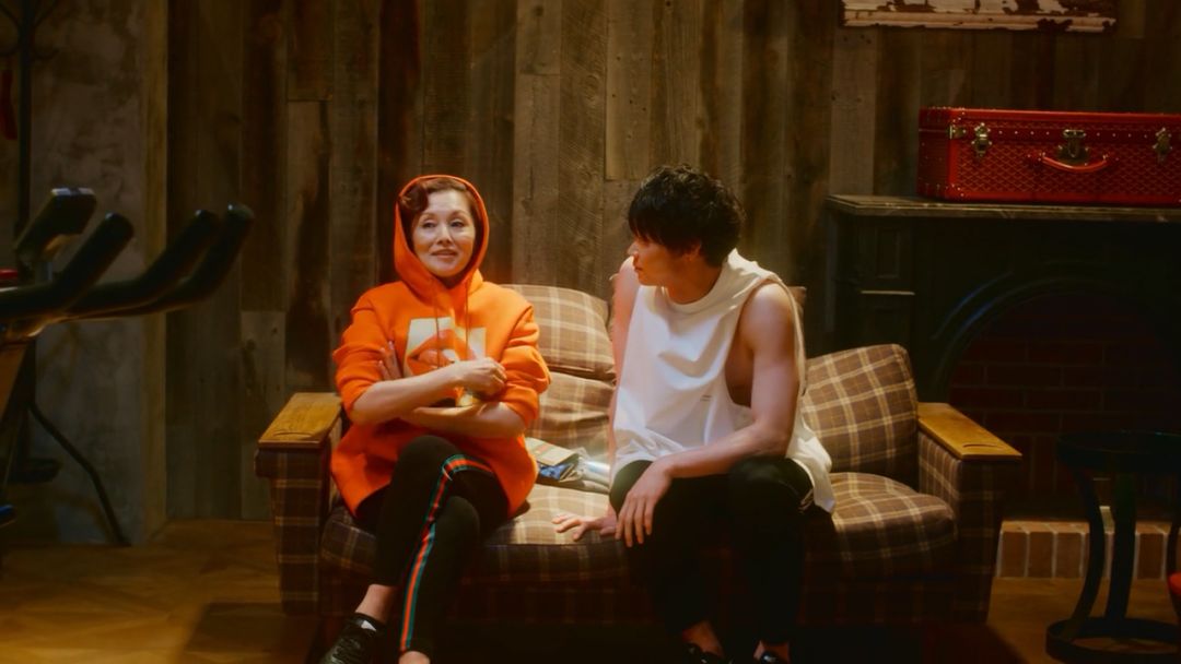 虽然年长但依旧紧跟潮流的惠理子最爱 Gucci,运动时穿着 HUF 的橙色卫衣和 Gucci 运动裤,鞋子也是 Gucci。