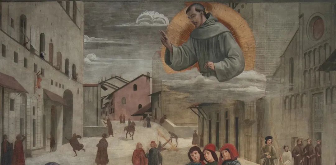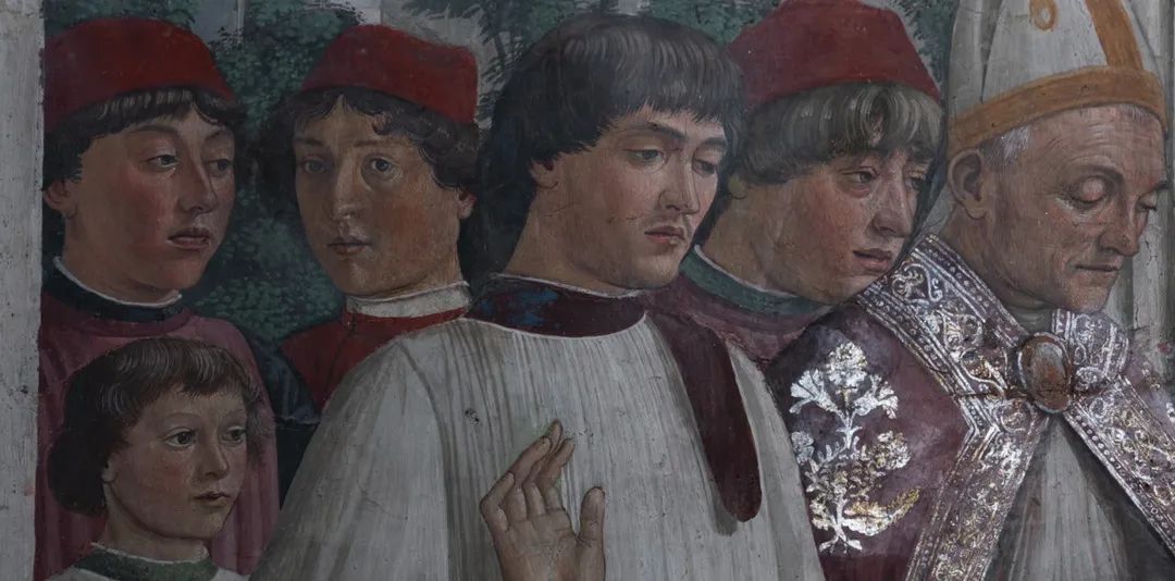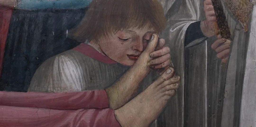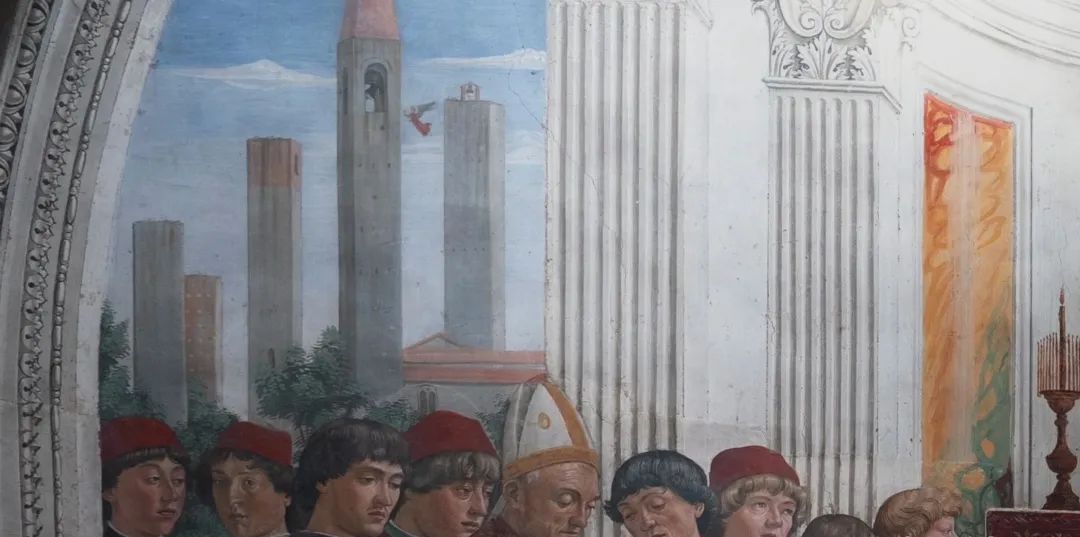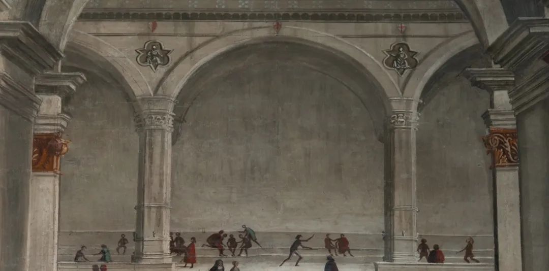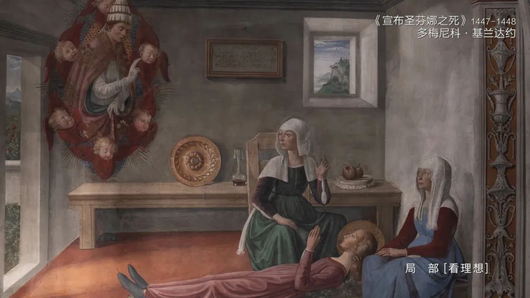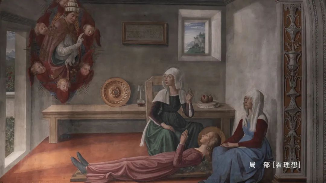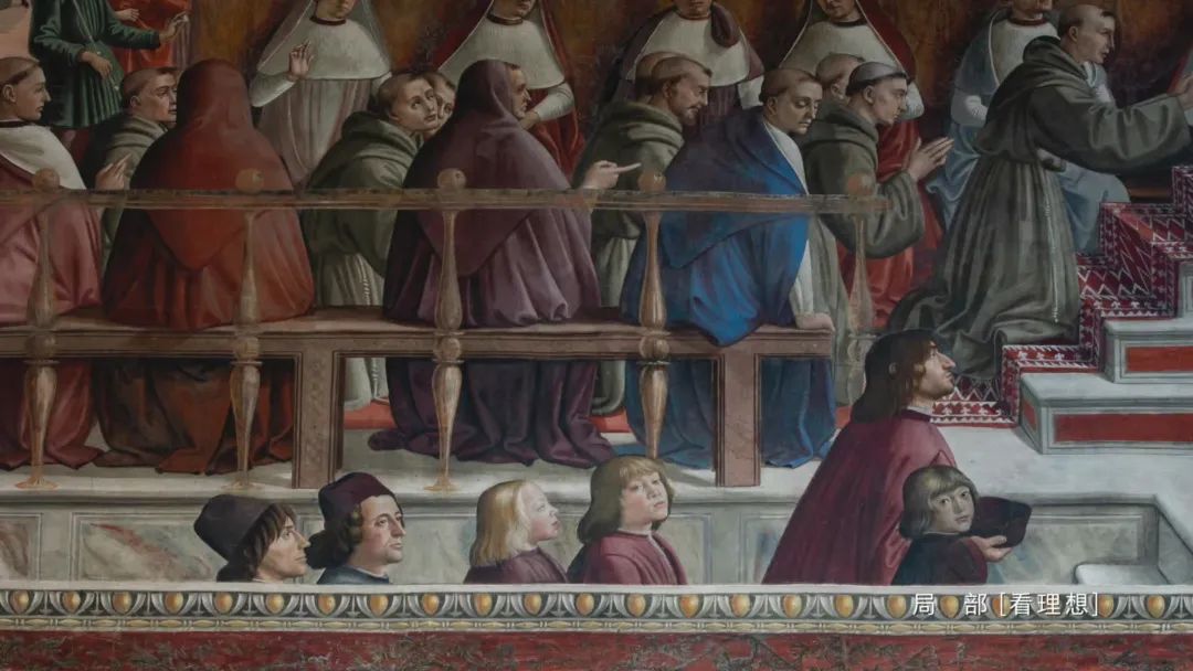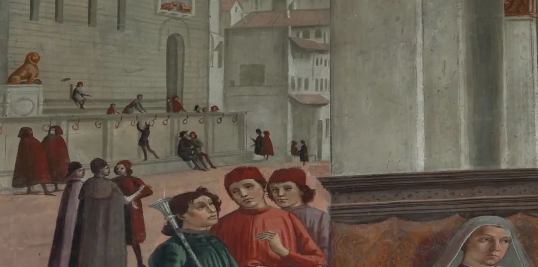 更绝的不止于此。《局部》第一季我曾经提到过威尼斯画家卡巴乔非常善于描绘远处的景深,其实比他早上百年,基兰达约不但画了远处,还画出他眼前的动静。