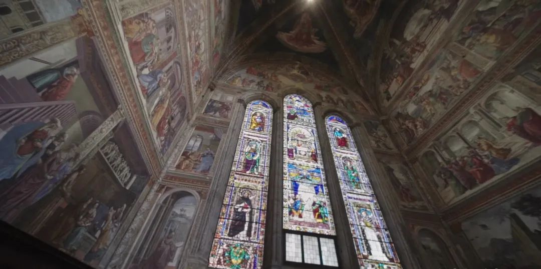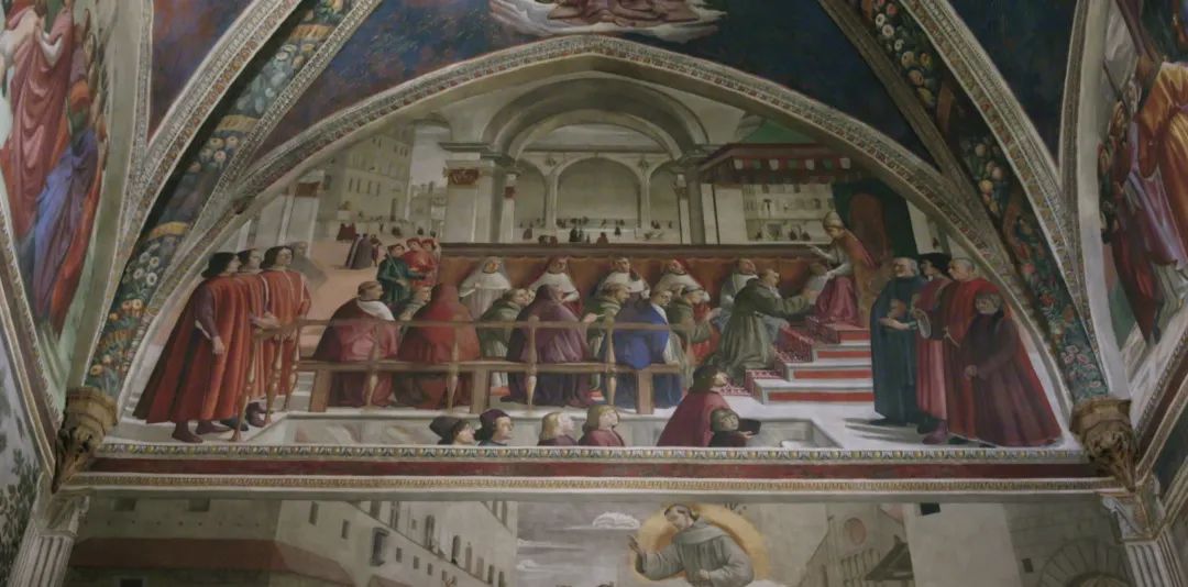 我们再来看一组基兰达约所谓“次要”的壁画吧,这里是佛罗伦萨著名的天主圣三大殿。曾经为美第奇工作的银行家萨塞蒂,身后在这里存放他的遗体。