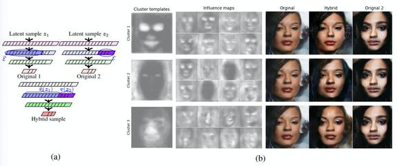 上述反事实杂交框架能够评估给定模块如何影响生成器的输出。接下来,作者通过从潜在空间重复生成对(z1,z2)来量化其因果效应,其中,这两个向量能够彼此独立地进行采样。然后,按照上述步骤为一批样本生成并收集混合输出,并使用它们生成一个影响图(influence map)来估计平均绝对效应: