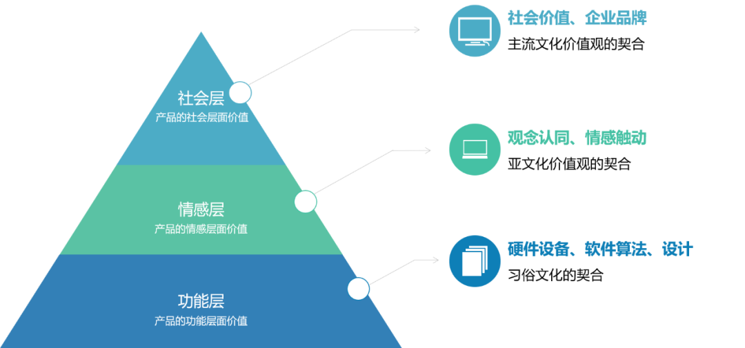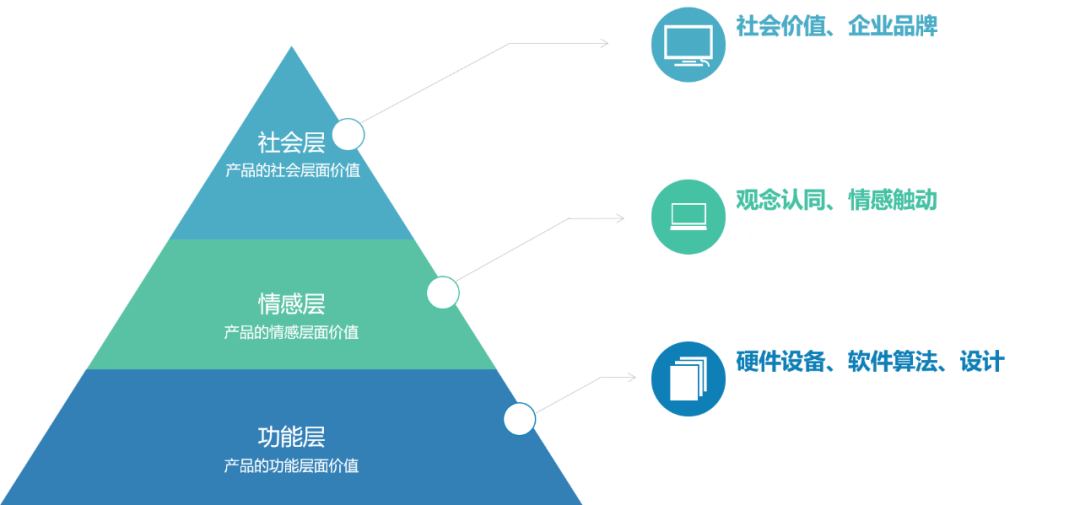 再往上是这个手机或这个品牌为这个社会带来的正面或负面价值,这是社会性的层面。