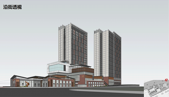 项目鸟瞰及沿街透视