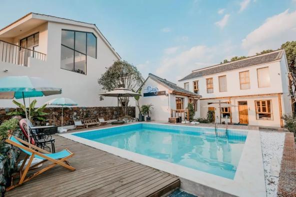 原舍·平湖是乡伴苏家的高端精品民宿,除舒适的客房外,还有无边际泳池、露天大草坪、包间KTV等配套设施。