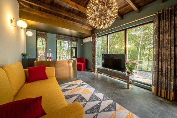路旁幽绿的竹林,七栋私密性极佳的木质结构房子像北斗七星,隐在其中。24小时管家用心服务,选茶、选香、选诗……留声机唱着、画板为你摆好、留言本里的话和你很近,小熊守护你入眠,一切都是那么的美好!