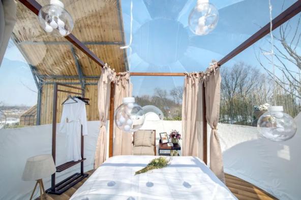 住在观音殿的泡泡屋里,睁眼就能看到星空。12个星座主题的泡泡屋,一定有一间专属于你,燃亮属于自己的星座灯,做梦都在飞行。