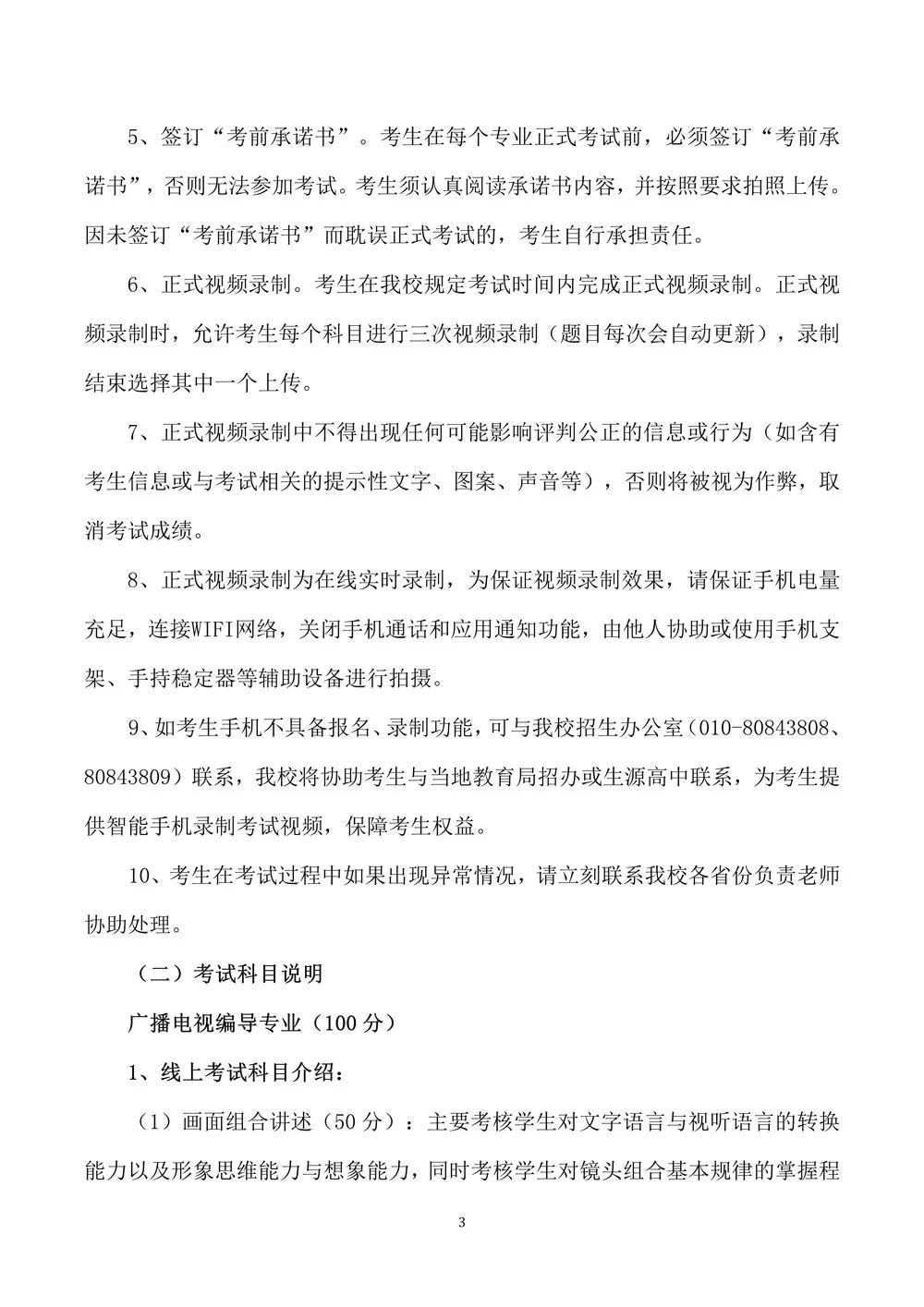 考生被我校录取,入学后将对考生身份和专业能力进行严格复核和审查,发现考生身份不符、视频作品作假、替考等作弊者,按国家招生考试相关规定处理。