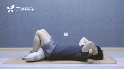 ● 把枕头(或者泡沫轴)放在脚后夹紧,双手放在耳旁;
